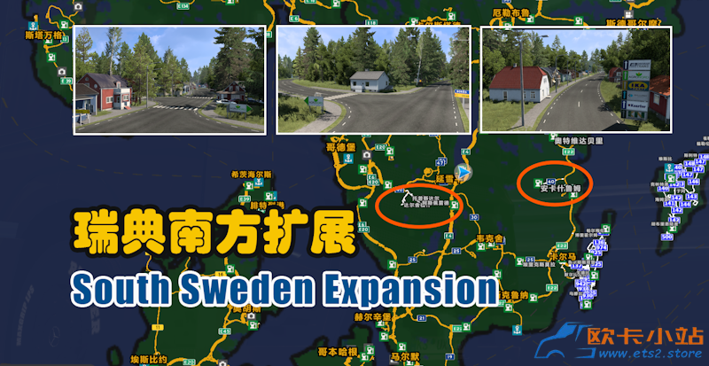 模组简介:在瑞典南部增加托尔普斯达尔、安卡斯鲁姆等多个城市和公司货场。地图使用前置条件:斯堪地那維亚DLC和波罗的海彼岸DLC,兼容 Promods欧洲2.80