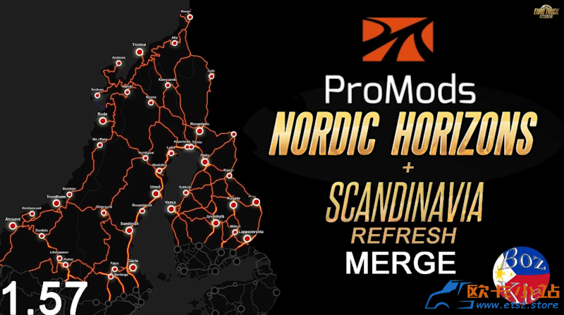 模组简介:模组为 Promods 2.77 添加了 Nordic Horizon DLC 和 Scandinavia Refresh兼容。目前还不是很完美,但至少目前可以将ProMods与北欧地平线DLC一起使用