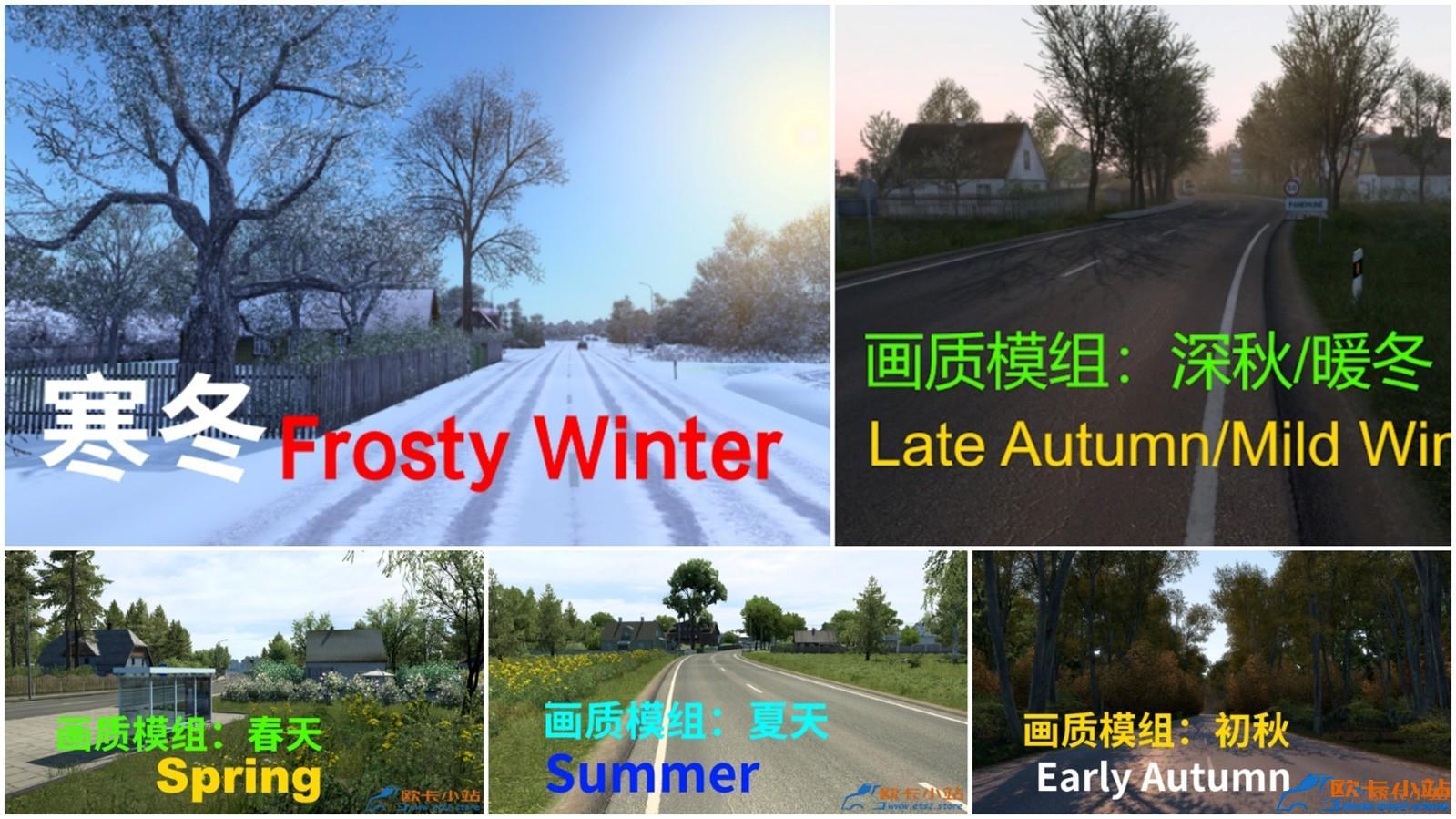 更新适配1.58欧卡2的5个画质优化模组,分别是春天,夏天,初秋,深秋和寒冬。
