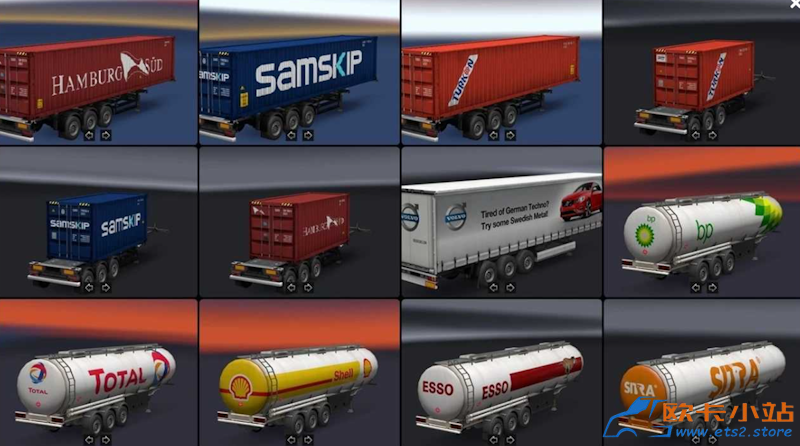 模组简介:超过 700 款真实公司涂装; 高品质清晰的标志和各种类型拖车的精细材质; 与 AI 交通系统集成, 支持自定义拖车;
