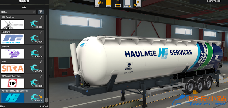 下载路径:欧卡2-其他类MOD\挂车模组:Feldbinder KIP 筒仓拖车 v8.0